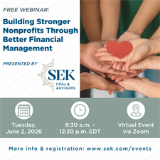 Enrich your knowledge by joining us at SEK's annual event for nonprofits. Our team of experts will provide you with timely updates on industry changes and valuable tips to optimize your organization's performance.
